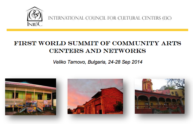 The First World Summit of Community Arts Centers and Networks will be held between September 24 - 28, 2014, in the historic capital of Bulgaria, the city of Veliko Turnovo, with the generous support of the Municipality of Veliko Tarnovo as candidate for European Capital of Culture 2019. The realization of the Summit is supported by our generous host, the mayor of Veliko Tarnovo. We are expecting the participation of representatives of networks and cultural centers from about 50 countries from 5 continents.