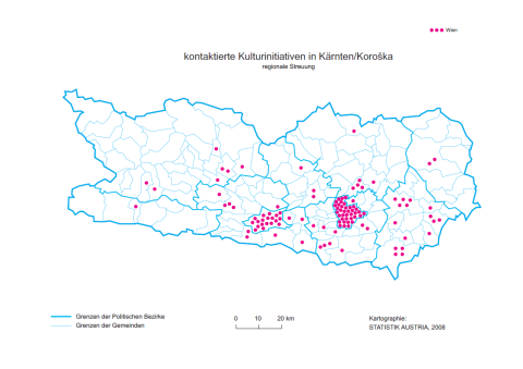 Mit 354.125 Besucherinnen und Besuchern, 4.749 Veranstaltungen im Jahr 2018 und 55% Eigenleistung zeigen die Kulturinitiativen, dass sie ein unübersehbarer Faktor in der Kärntner Kulturlandschaft sind. Dem stehen mangelnde öffentliche Förderung und personelle Unterbesetzung (nur 22 ganzjährig Vollzeitbeschäftigte) gegenüber. Den größten Förderanteil leisten die Gemeinden inklusive der Städte Klagenfurt und Villach. S 354.125 obiskovalkami in obiskovalci, s 4.749 prireditvami leta 2018 in 55% lastnimi finančnimi sredstvi, so kulturne iniciative pokazale, da so faktor v koroški kulturni sceni, ki ga ni mogoče prezreti. Temu nasproti pa stojijo manjkajoče javne podpore in premahjno število sodelavcev (samo 22 oseb je celoletno polno zaposlenih). Največji delež podpor prispevajo občine, vključno s Celovcem in Beljakom.