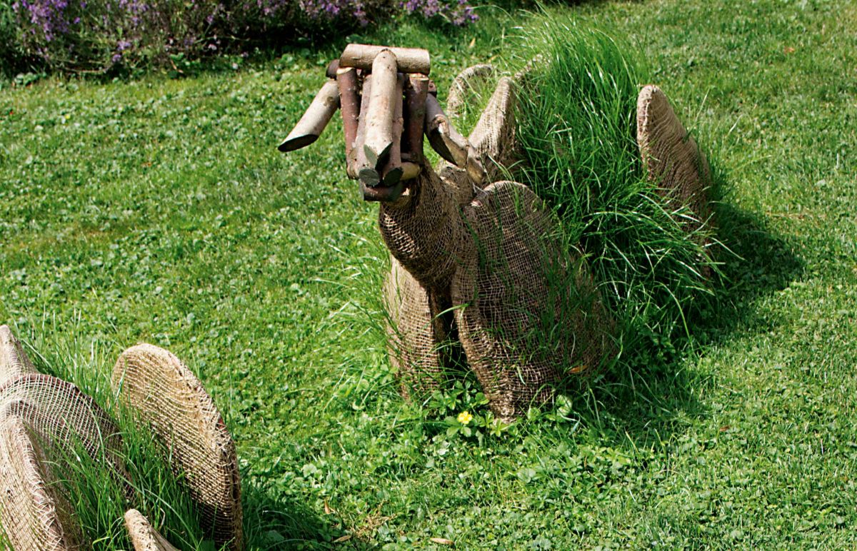 Coverbild des IG Magazins 2023: Stefanie Lintz, Ruhende Herde 2018 Installation für den Außenbereich der Galerie Bajadere in Neuhaus