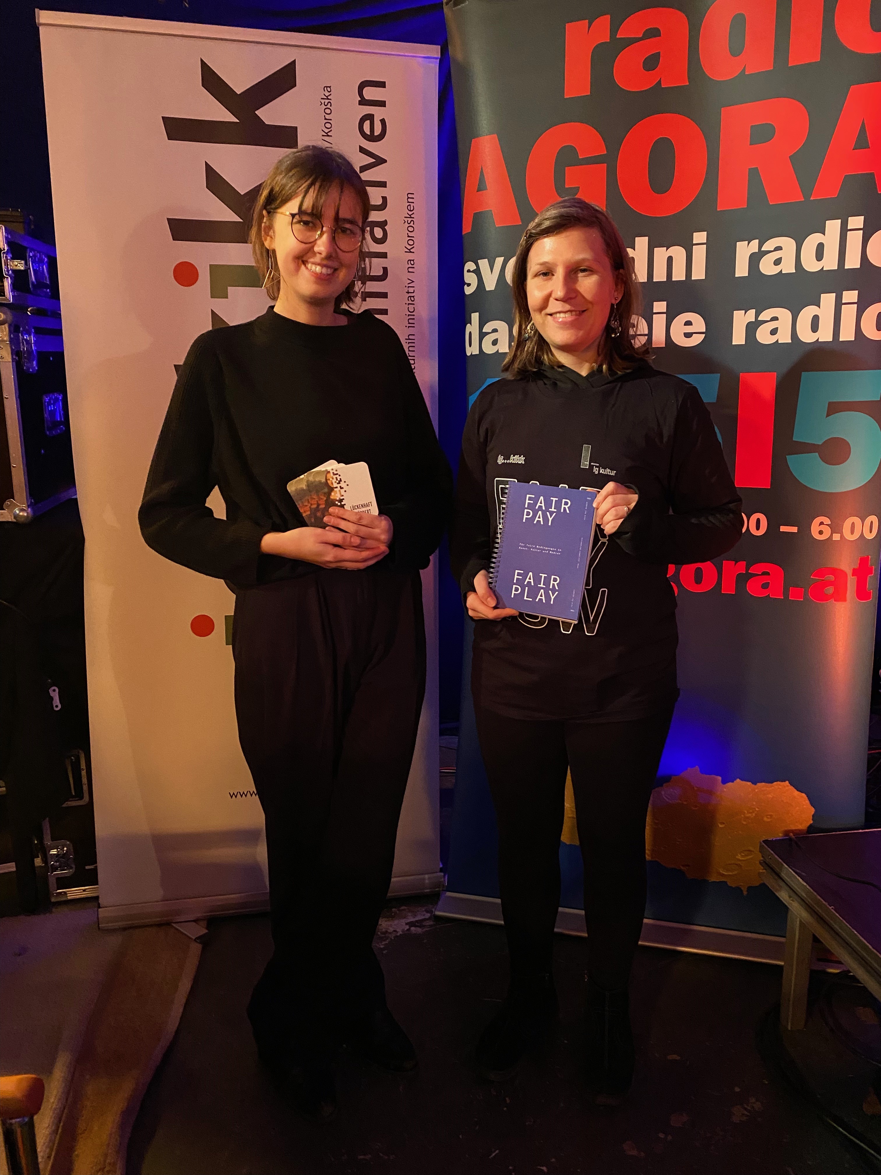 Vor diesem Hintergrund entstand die Plakataktion „FAIR PAY statt UNBEZAHLT" der IG Kultur, welche am „Fair Pay Day“ von der Landesorganisation IG KiKK präsentiert wurde. „Eine Veranstaltung fair bezahlen, der Rest ist unbezahlte Arbeit?“ fragen die Kulturtätigen in Richtung Fördergeberinnen. „Wir fordern den Bund, das Land Kärnten/Koroška und alle Gemeinden bzw. Städte auf, die Verantwortung für die sozial- und arbeitspolitischen Auswirkungen ihrer Förderpolitik zu übernehmen und eine Verbesserung der sozialen und ökonomischen Lage der Kunst- u. Kulturarbeiter:innen durch geeignete Maßnahmen herbeizuführen.“, so Elena Stoißer, die Büroleiterin der IG KiKK. „Denn nur eine faire Förderpolitik aller Gebietskörperschaften führt zu fairer Bezahlung.“