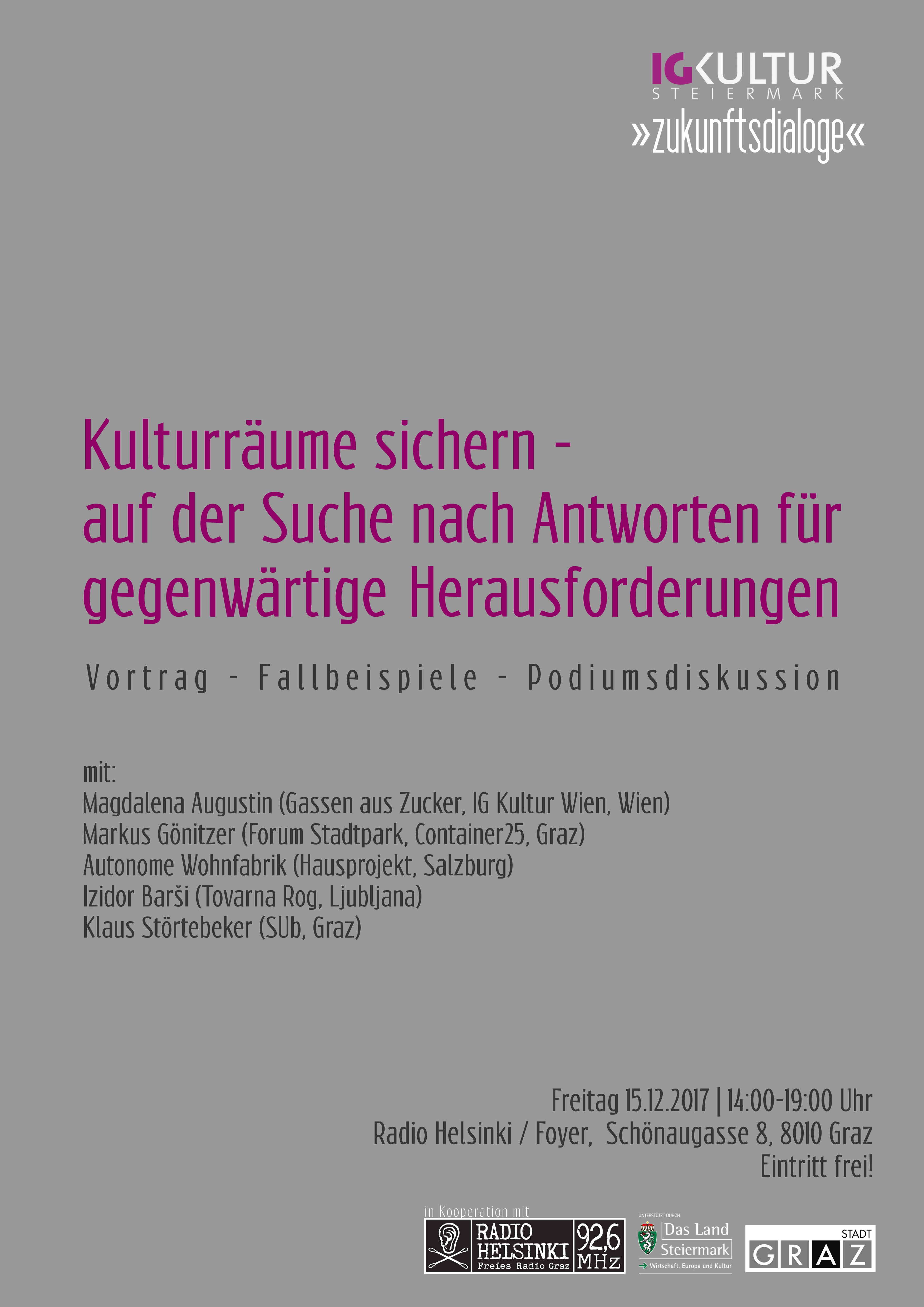 Kulturräume sind nicht nur wichtige Treffpunkte für Kunst- und Kulturinteressierte, sondern gleichzeitig auch Arbeits-, Produktions- und Denkräume für Kunst- und Kulturschaffende. Diese geraten jedoch zunehmend unter Druck, weil sie von der (Stadt-)Politik nicht mehr nach ihrem Gemeinnutzen, sondern nach ihrem Nutzen für die Aufwertung der Stadt bewertet werden. Sie sind das Kapital der Stadt im Wettbewerb um Investitionen, hochqualifizierte Arbeitskräfte und (zahlungskräftige) TouristInnen. Kulturprojekte sollen leerstehende Geschäftslokale und heruntergekommene Straßen beleben und nach außen hin zeigen wie „cool“ und „hip“ eine Stadt ist. Die Kulturschaffenden selbst profitieren davon allerdings kaum und befinden sich meist in einer extrem prekären Situation.